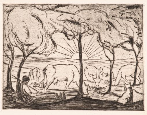Alfred Partikel, Weidende Kühe, 1913, Radierung, 15 x 19,5 cm, WVZ D 48