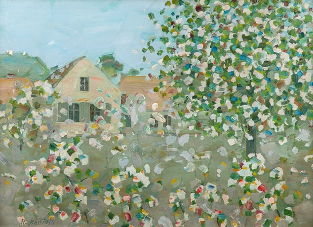 Mit 24.000 Euro den zweithöchsten Hammerpreis erzielte der von den Pointillisten um Georges Seurat und Paul Signac informierte Karton „Kirschblüte“ des Rostocker Spätimpressionisten Rudolf Bartels, einem der bedeutendsten Mecklenburger Maler der ersten Hälfte des 20. Jahrhunderts. Auch hier hatte man nur mit einem Bruchteil des Ergebnisses gerechnet (Taxe 7500 Euro). Erst vor einem Jahr notierten die Ahrenshooper mit 32.000 Euro für eine Variation seiner gesuchten „Laternenkinder“ von 1922 einen vorläufigen Bestwert für Rudolf Bartels.