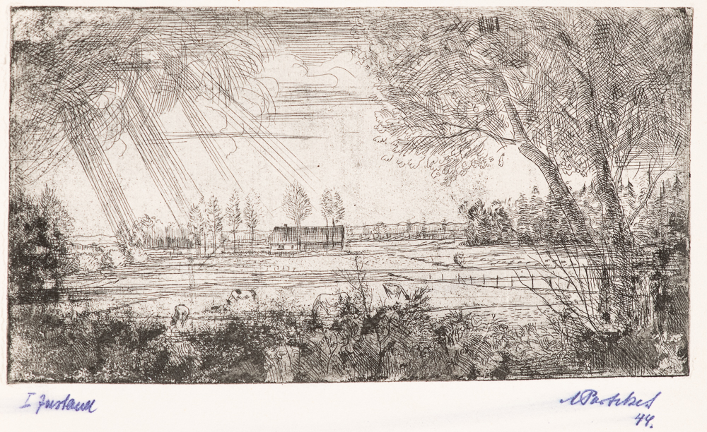 Alfred Partikel, Zwei Garbenbinderinnen, 1913, Radierung, 11 x 14,5 cm, WVZ D 40 Alfred Partikel, Im Bayrischen Wald, um 1922, Radierung, 11,8 x 15,9 cm, WVZ D 111 Alfred Partikel, Pregel-Landschaft (Ostpreußen), 1944, Radierung, Aquatinta, 12,3 x 22,5 cm, WVZ D 143 Alfred Partikel, Baumgruppe mit Frau, 1910, Radierung, Aquatinta, 6,7 x 9,8 cm, WVZ D 145 Alfred Partikel, Landfrauen unter Bäumen, 1913, Radierung, 16,8 x 14,7 cm, WVZ D 49 Alfred Partikel, Schreitende Frau und Junge, 1926, Radierung, 14,4 x 9,5 cm, WVZ D 129 Alfred Partikel, Fußwäsche, 1911, Radierung, Aquatinta, 11,2 x 8,5 cm, WVZ D 1 Alfred Partikel, Nach dem Begräbnis, 1913, Radierung, 8,2 x 9 cm, WVZ D 36 Alfred Partikel, Kreuzaufrichtung, 1913, Lithografie, 30,5 x 41,2 cm, WVZ D 31 Alfred Partikel, Großstadtbild (I), 1912, Radierung, 14,7 x 19,5 cm, WVZ D 25 Alfred Partikel, Großstadtbild (IV), 1913, Radierung, 14,7 x 19,4 cm, WVZ D 27 Alfred Partikel, An der Brüstung/Finnische Mädchen, 1922, Radierung, 9,3 x 14,2 cm, WVZ D 135 Alfred Partikel, Wassermann, 1944, Radierung, 14 x 9,5 cm, WVZ D 139 Alfred Partikel, Diana, 1944, Radierung, 14 x 9,2 cm, WVZ D 141 Alfred Partikel, Landleute mit Rind, 1927, Radierung, 14,5 x 9,7 cm, WVZ D 115 Alfred Partikel, Fischer, 1944, Radierung, 14,2 x 9,1 cm, WVZ D 140 Alfred Partikel, Zwei Radierungen zur Geburt von Adrian Partikel:
