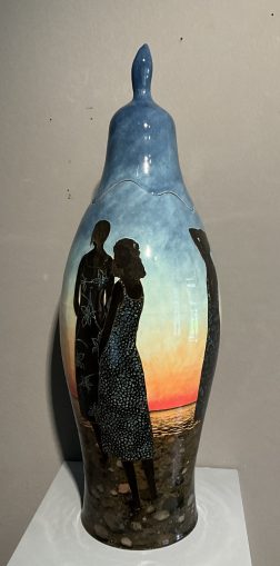 - Grita Götze, „Abend am Meer“, Deckelvase, 2025, Keramik, Engobemalerei, h = 47 cm