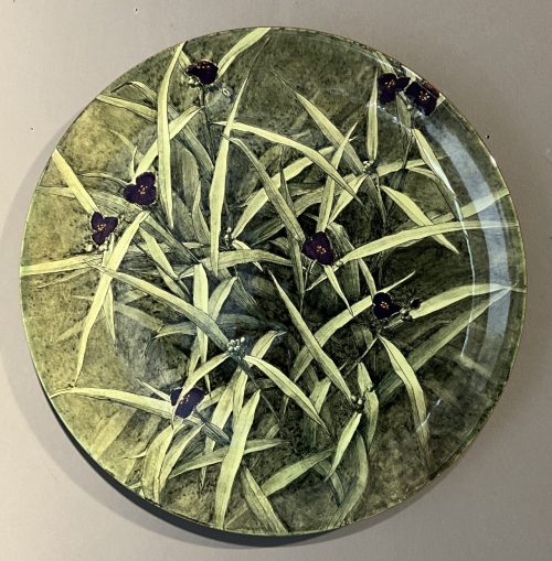 - Grita Götze, „Dreimasterblume“, Teller, 2025, Keramik, Engobemalerei, Ø 39,5 cm