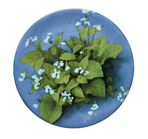 - Grita Götze, „Vergissmeinnicht“, Teller, 2025, Keramik, Engobemalerei, Ø 34,5 cm