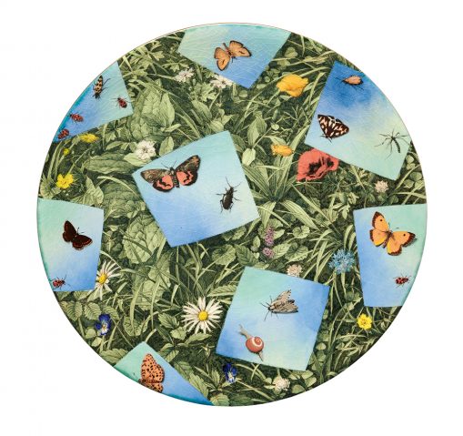 - Grita Götze, „Sommergewimmel“, Teller, 2024, Keramik, Engobemalerei, Ø 35 cm