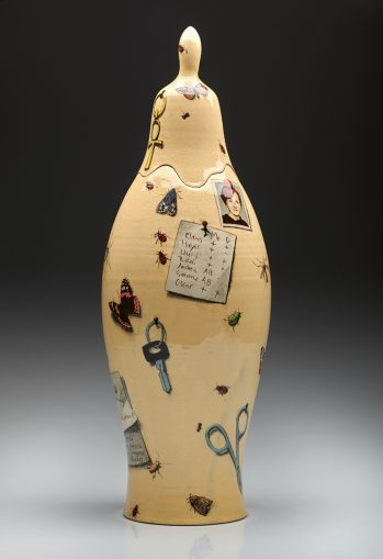 - Grita Götze, „Pinwand“, Deckelvase, 2022, Keramik, Engobemalerei, h = 47 cm