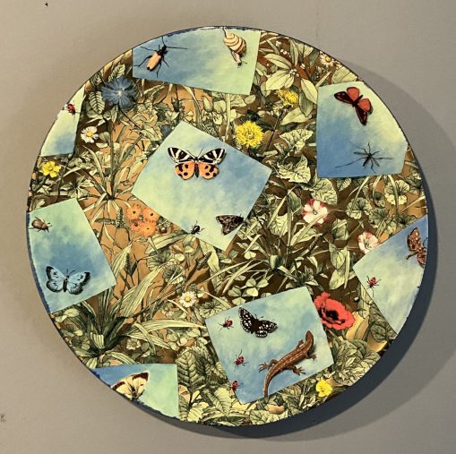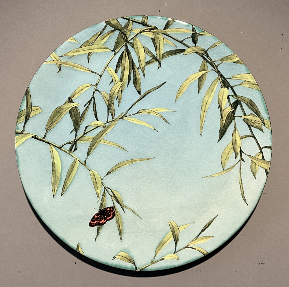 - Grita Götze, „Scheckenfalter“, Teller, 2025, Keramik, Engobemalerei, Ø 35 cm