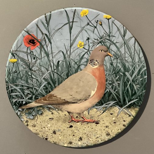 - Grita Götze, „Taube“, Teller, 2021, Keramik, Engobemalerei, Ø 31 cm