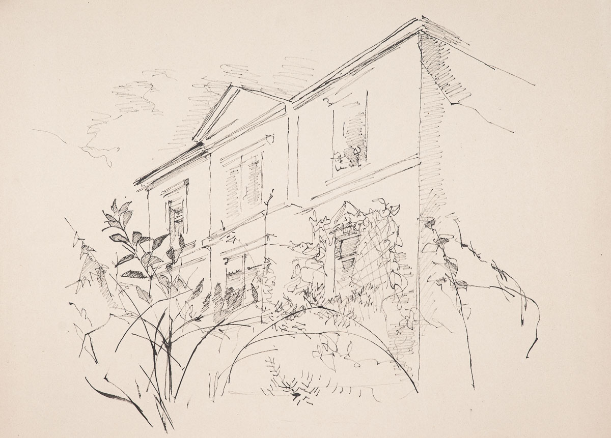 - Hans Kinder, Villa Luise, Dresden, o. J., Tusche, Faserstift auf Papier, 43,5 x 60 cm